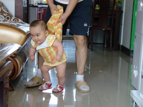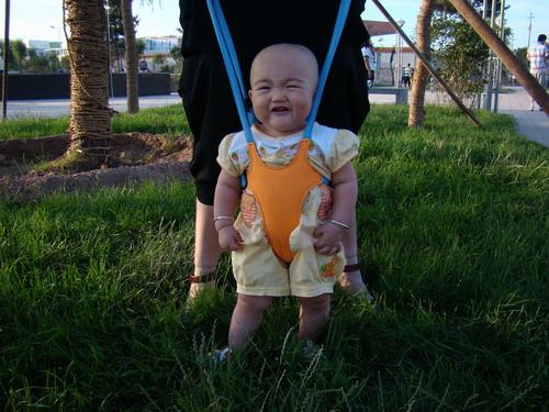 带着那个学步带真像个小超人,可爱得不得了
